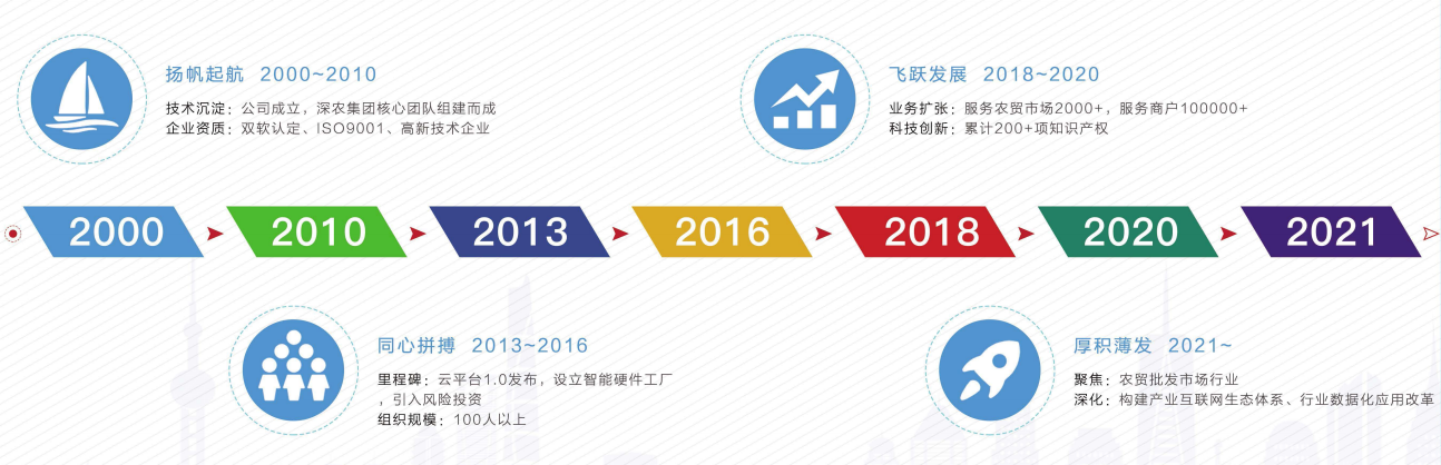 2012年 推出第1代智能溯源秤、电子结算软件、智慧市场管理系统