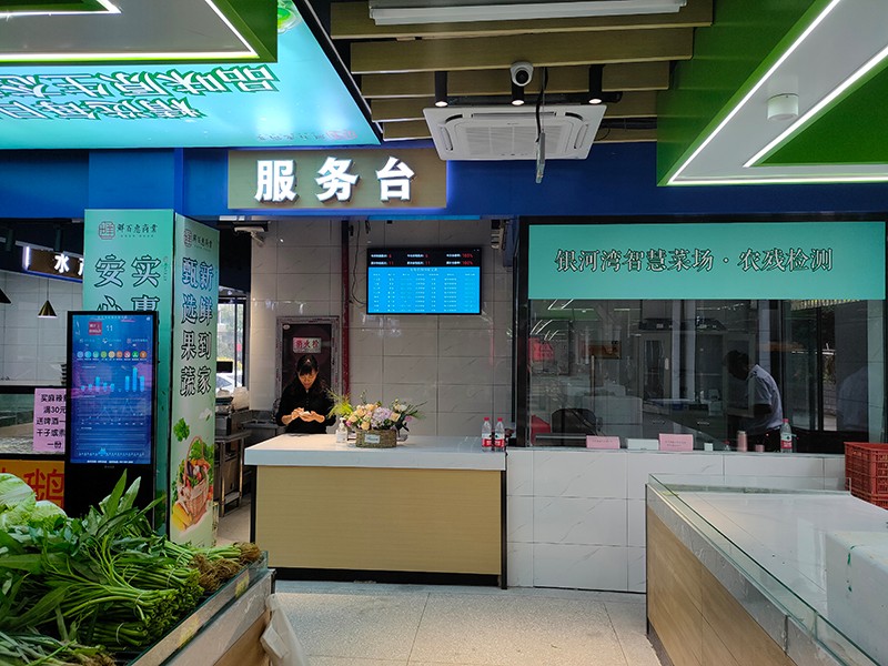银河湾市场宽敞、整洁,引入中科深信智能化设备,可追溯农产品产地、实时价格、检验检疫等信息,市场还配备了快速检测室,对农产品进行农药残留、瘦肉精、水产抗生素等项目检测,保证居民买到放心菜,目前已带动50多个商家入驻,带动200多人的创业就业。
