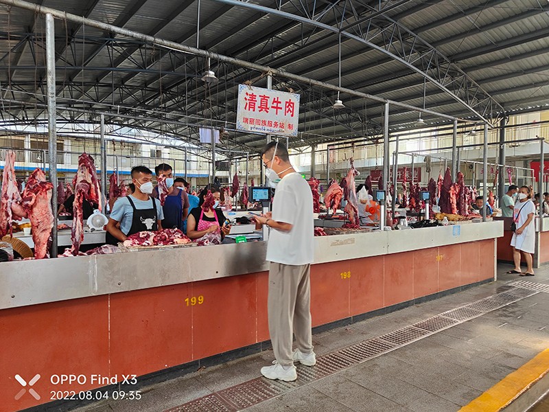 农贸市场与人民群众生活密切相关,是老百姓“菜篮子”供应的主渠道。为了加强市场监管以及强化市场主体单位责任,提升老百姓购物体验感,瑞丽市场开启智慧化改造。来到瑞丽市场,明亮整洁,琳琅满目的菜品、整洁宽敞的过道,既保留着传统农贸市场的烟火气,也提升了功能。地面铺设防滑砖、排水管改造,商品的价格、各类产品的检测数据以及各类数据的统计分析情况等内容在多个电子屏幕上滚动播放。瑞丽市场通过智慧农贸市场管理平台,综合运用食品溯源、信用等级、经营情况、交易数据、客流数据分析等实现农贸市场信息化管理。