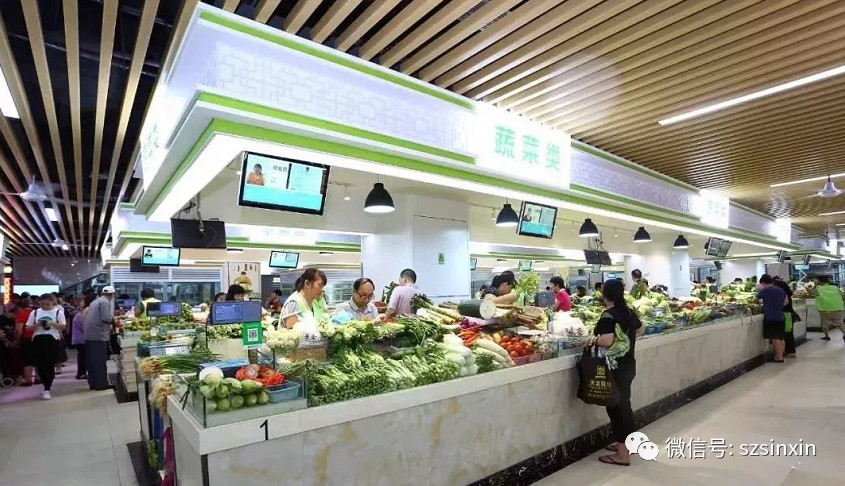 随着全国各地农贸市场改造升级和新建项目的开展,这些年,农贸市场作为政府格外重视的民生项目,发生了翻天覆地的变化,民间资本也嗅觉灵敏,感觉到农贸市场变革机遇的到来,但到底会以怎样的形式呈现?大多数行外人心中并没有确数。装修设计新面貌 新农贸市场的建筑立面设计呈现大中体量和规模,设计更为大气。 菜场内部设计除了按照行类进行合理规划,实现摊位最优化的空间利用。另外,可移动货柜被广泛利用,服务台、电梯、强弱电、给排水、新风系统、农残检测室成标配,星级厕所、生鲜垃圾处理房等新设计。 在这些标配的硬装之外,还融入了年轻人广受欢迎的文化创意元素。让市场在整体风格上,摆脱了标准化却无个性元素的拘泥之感,这也是为大批年轻消费者的涌现做更多的场景设计考量。
