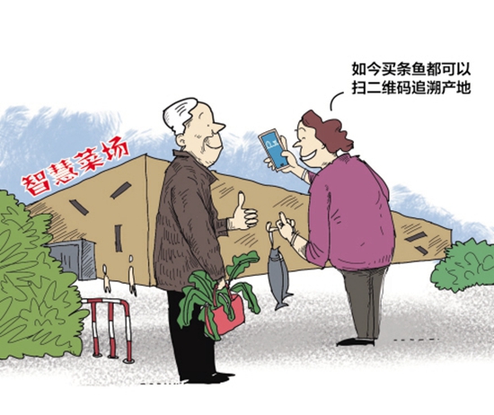 该市场负责人周峰介绍,市场内部高清摄像头全覆盖,实现远程实时全面智慧管理,并通过一户一屏的架设,实现了每户经营者的信息、信用等级、每日菜价等数据的公示,既方便了群众监督,也方便了市场日常管理。于菊花告诉记者,在市场卖菜最怕的就是丢钱,“我在市场干了这么多年,这样的事难以避免。去年,我收到过两次假钱,摊位上也丢过东西,有时候太忙了,顾客给钱后我找没找钱也说不清楚,还为此发生过争吵。”市场改造后,于菊花的烦恼少多了,“现在不怕了,反正有监控,一查就清楚了,而且现在一半以上顾客用手机支付,也免了收到假钞和找没找钱说不清的麻烦。”