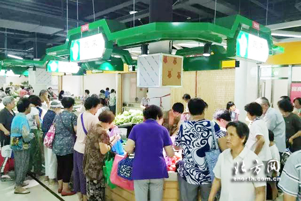曙光路生活广场内,市民正在选购新鲜时蔬
