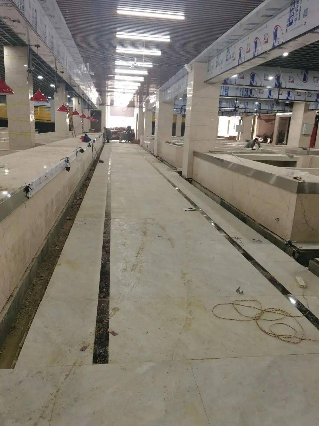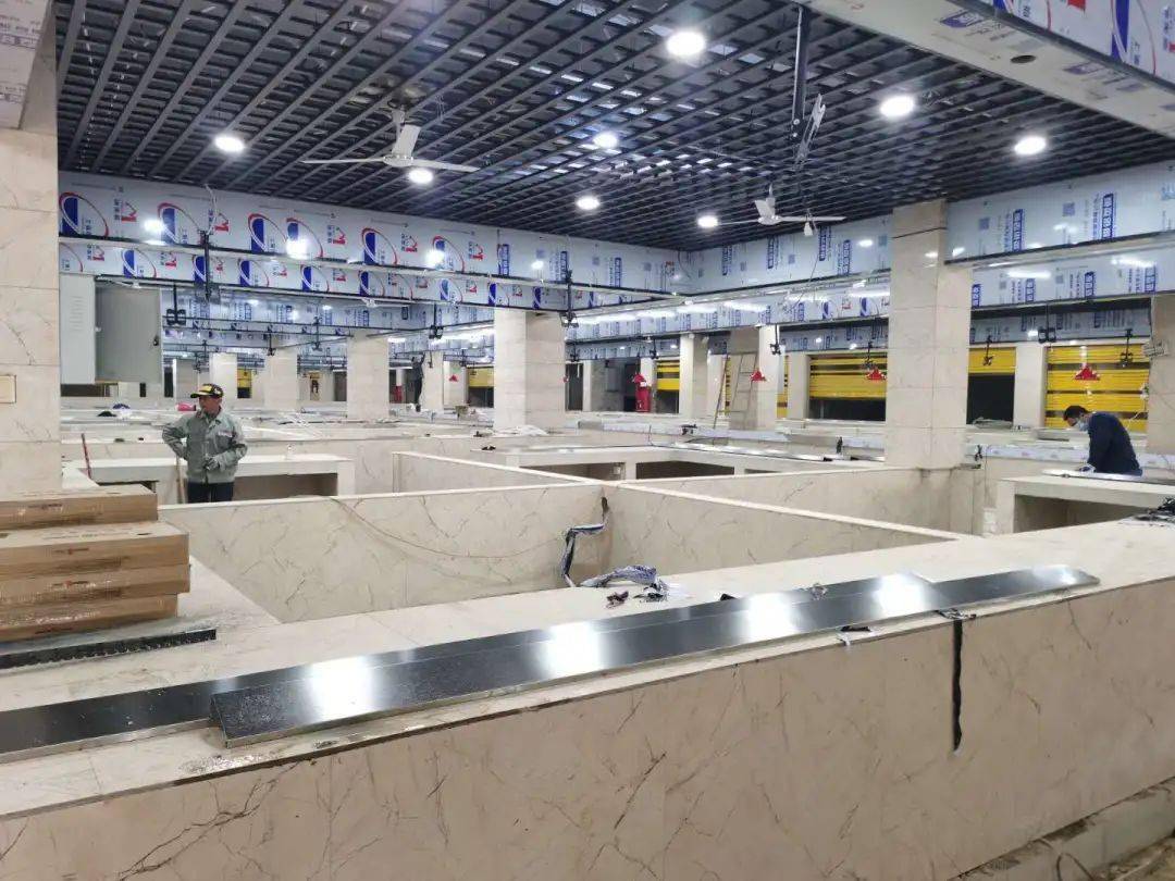 提起农贸市场,大多数人可能想到的都是环境差、味道重、管理混乱,然而,新型智慧农贸市场将彻底改变人们的这一观念。11月6日,记者来到位于老车站路(原华联超市)的智慧农贸市场看到,市场工作台已经砌筑完毕,30余名工人师傅仍在紧张施工,为11月18日的试营业做准备。
