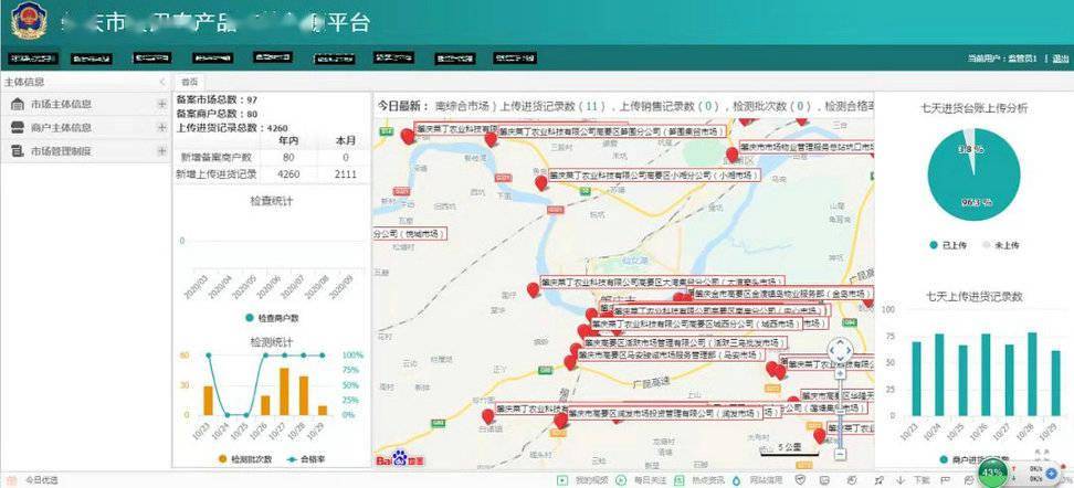 记者今天从肇庆市市场监管局获悉:肇庆市推进农贸市场食用农产品质量安全管理溯源快检新治理模式,取得显著实效。从2020年10月至今,已完成全市3个试点农贸市场共78个经营档口以及全市7个县(区)97家快检任务农贸市场的主体信息录入更新,3个试点农贸市场共上传10627份合计5.8万批食用农产品进货记录到“肇庆市食用农产品监管溯源平台”,实现来源不明或者不清的产品100%进行快速检测,问题产品100%得到及时处理,为推进农贸市场食用农产品质量安全规范管理提供有力支撑。