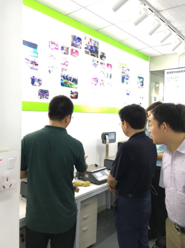 在公司领导的陪同下,各位领导参观了中科深信公司整体,并现场观看操作了溯源电子秤及智慧农贸信息化综合管理平台。