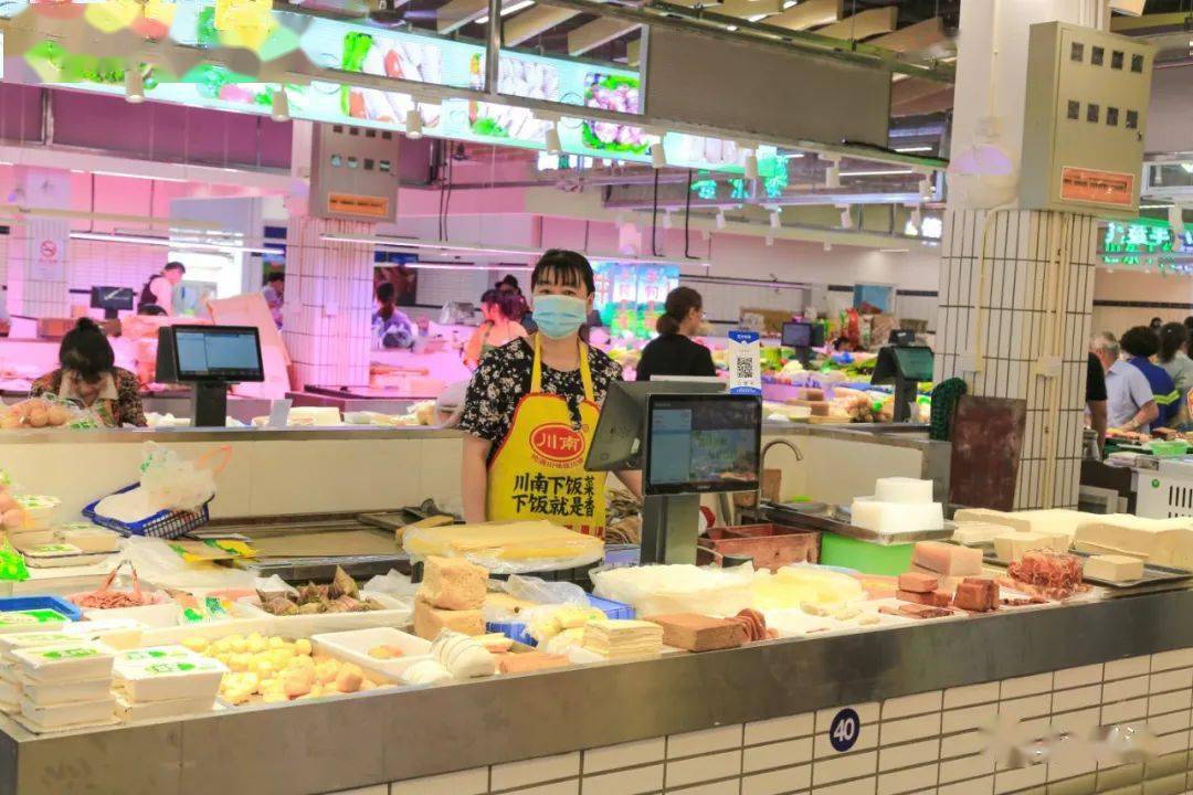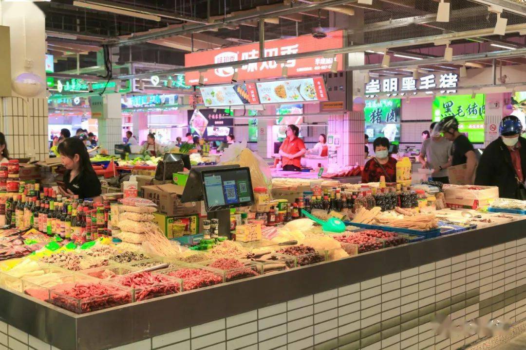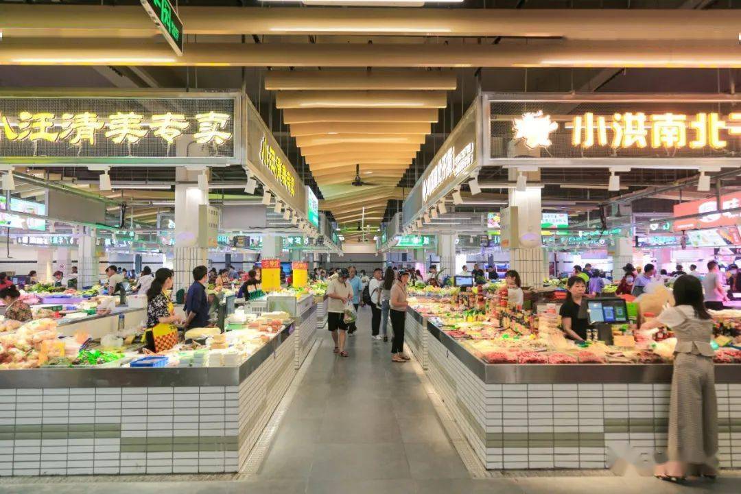 改造后的新桥菜场既具有传统菜场的“烟火气”,又拥有超市的“高颜值”,成为集生鲜零售、小吃美食、生活服务为一体的综合性农贸市场。