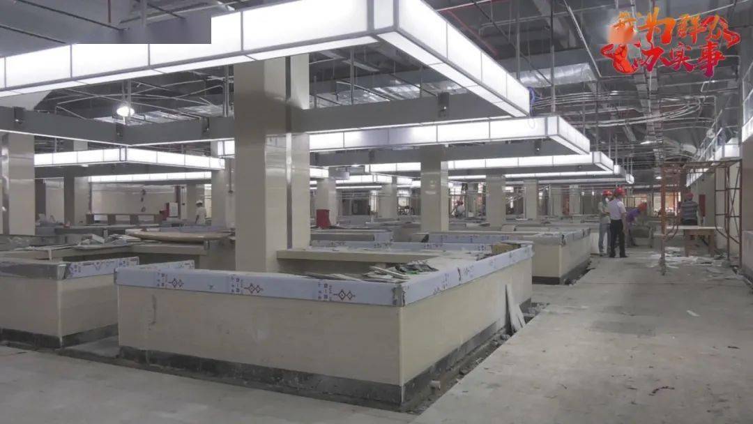 升级改造工程于今年3月正式动工,内容包括:建筑物内外装修、市场内外摊位装修、排水、排污、消防及电路设施、智能化管理系统和设备等。目前已完成市场内部清拆、地下排污管道铺设、内部砌台、消防固件安装、台面铺设、吊顶的龙骨架安装,瓷片、地面已铺设,剩余吊顶扣板、监控、水电、消防设施等软件安装,整个工程预计2021年7月完工。
