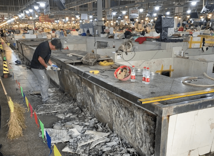 比起设计师,经营户才是最了解市场弊端的精准人群。改造前,县商贸集团专门做起了问卷调查,“这个鱼缸开口是喜欢平口还是斜口?”“下水井密度不够大是吗?”结合经营户的意见,县商贸集团领导班子经过几天汇合商讨,首个手绘板摊位设计图定稿。“就这么定了!先做样板仓,让经营户们再提提意见,意见成熟了,我们再开工!”