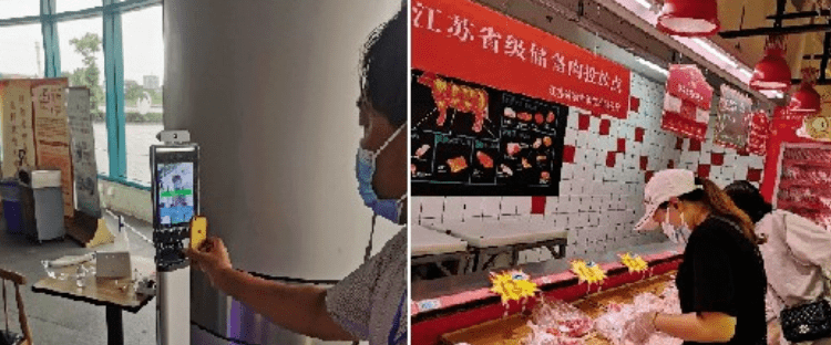 现代快报记者在大润发超市里看到,这里设置 3 道门岗查验出入证、苏康码。有的市民除了自己采购,还帮不能出门的邻居代购。