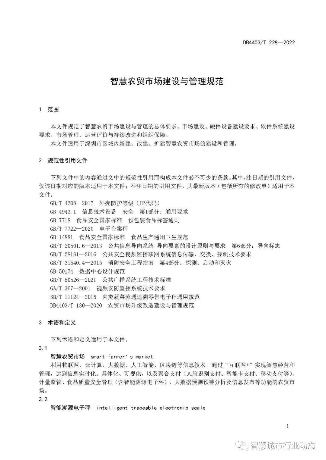 近日,深圳市市场监督管理局出台了《智慧农贸市场建设与管理规范》《智慧农贸市场管理系统建设规范》两项地方标准。