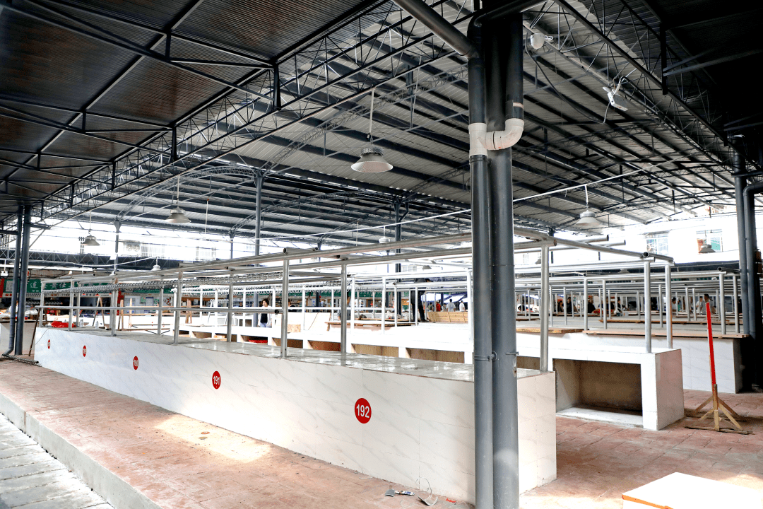 改造后,城南农贸市场统一布局摊位和销售点,大棚进行了加固维护。整个市场的雨污分流和水电全部进行了统一改造,大大改善了市民的购物环境,提升了农贸市场的功能性。