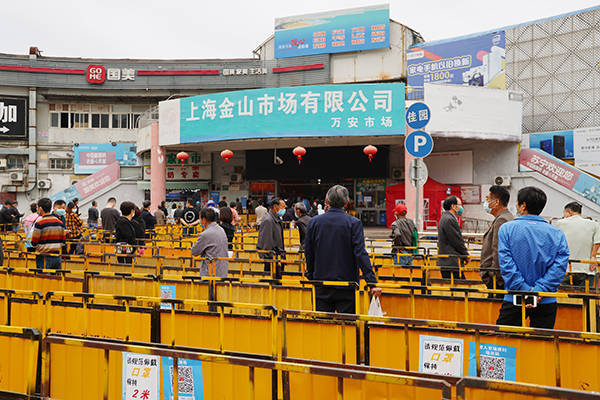 万安市场坐落于上海金山区朱泾镇万安街和公园路路口,建筑面积10000平方米,是上海市室内最大单体零售农贸市场,与其规模相对应的便是迎接复工复市的大量准备工作。复市工作专班按照经营户须来自本镇防范区和市场限定出摊率等要求,最终确定了181家经营户复市名单。