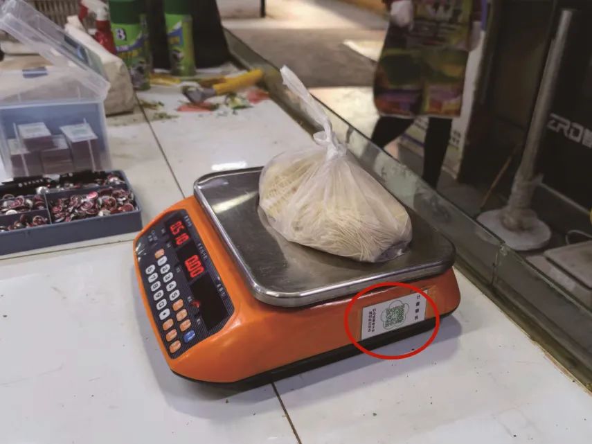 “这台秤上贴的是什么码啊?”前来买菜的王师傅发现,摊位上的电子秤都张贴了崭新的二维码。