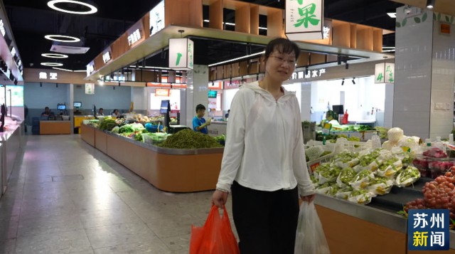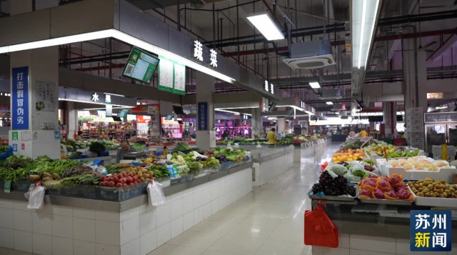 空调送来凉风,菜品丰富新鲜。中午时分,在焕然一新的苏州高新区徐何集贸市场,市民李女士拎着荤素菜和水果,刚刚完成了周末大采购。
