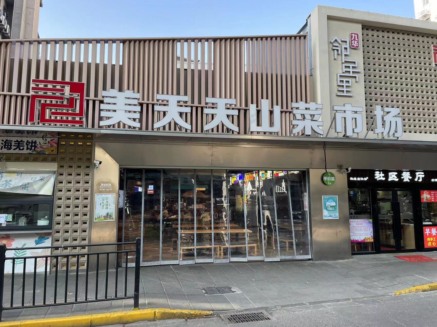平顺菜市场坚持保留烟火气、还原大型菜场的“本味”。美天天山菜市场却走了另一条“小而美”的路线,在今年的智慧化改造升级中,菜场不再是单一的买菜功能,而成为了拥有社区餐厅、小修小补等便民、利民业态的“九华邻居里”社区商业综合项目。