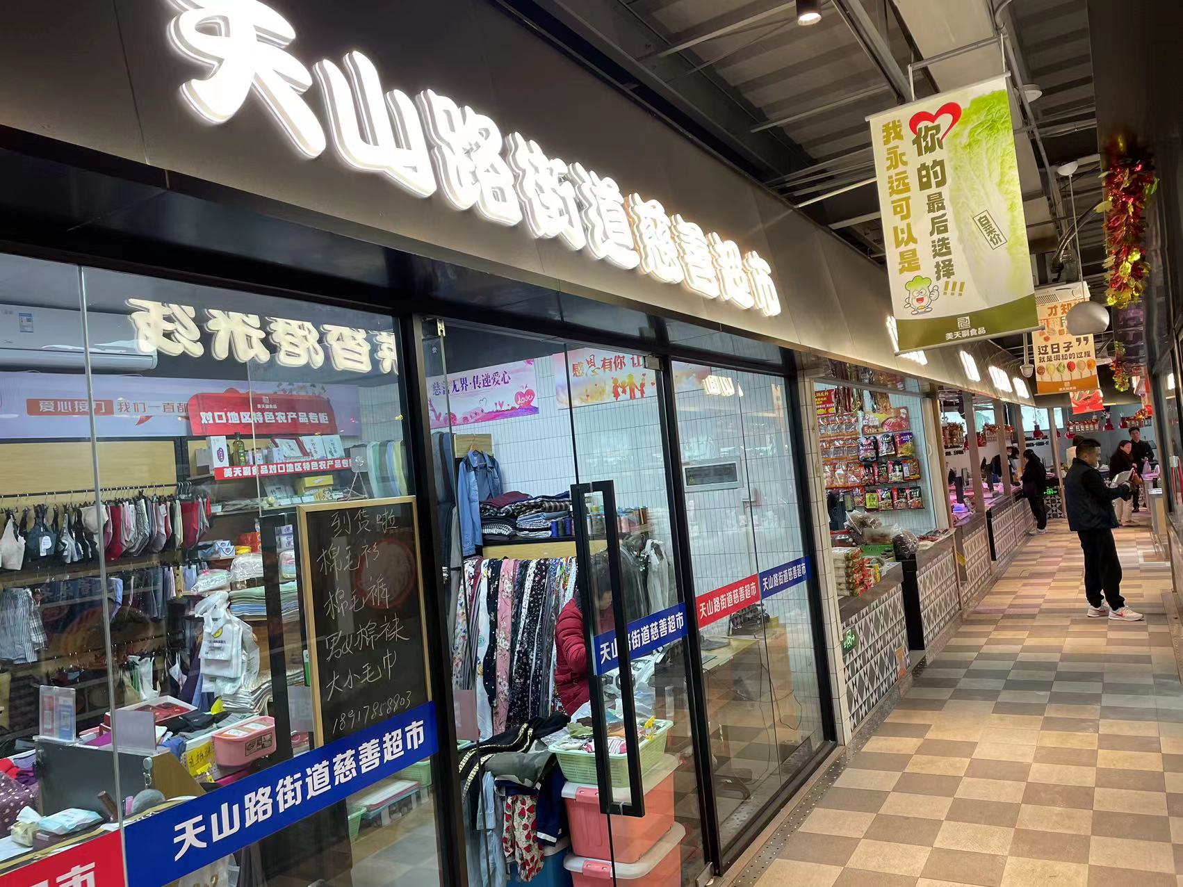 “智慧菜场也要为老年人的生活提供便利。有些老年人不会上网,我们这里摆放的平价衣物,价格比网上更便宜,质量也好。拉链坏了、要改衣服长短,都可以走进来,几元钱的人工费快速解决问题。”美天天山菜市场慈善超市负责人李玮说,“响应街道号召,一部分营收也会用于慈善爱心公益。”