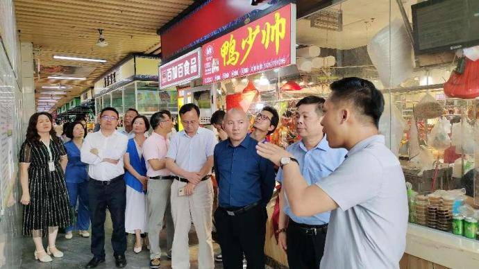 友谊智慧农贸市场是广西首批5家五星级农贸市场之一,南宁市首家智慧农贸市场,在传统的农贸市场里面具有标杆意义。农贸市场,这是一个具有几千年历史的行当,人类出现分工时就出现了。如何将这一古老的行商与坐贾“场”,赋智慧之能,让其焕发出时代魅力,我们在友谊智慧农贸市场找到了答案——智慧农贸市场新质生产力! 智库专家团26位专家在友谊智慧农贸市场副总裁马庆毅、总经理林耀毅、市场管理处经理邓明琪等管理层领导的陪同下,参观了友谊智慧农贸市场。市场干净卫生、有条不紊、井然有序、无大的嘈杂声,一派欣欣向荣的繁华景象,令人眼前一亮! 市场副总裁马庆毅介绍了友谊智慧农贸市场的基本情况:友谊智慧农贸市场位于南宁市经开区友谊路西二里12号,建筑面积2万多平方米,使用面积约1.3万平米,服务周边居民近25万人。友谊智慧农贸市场是在友谊新村农贸市场的基础上改造升级建成的新型农贸市场,改造升级后的市场,设施一流,分区合理,功能齐全,给排水设施、活禽三分离设施、市场停车区域等合理布局,解决农贸市场脏、乱、旧、小同痛点问题。 2021年,由广西尚锦置业投资有限公司投资对友谊新村农贸市场进行了全面升级改造,打造成智慧农贸市场。新市场功能齐全,设施一流,设有经营摊位近300个,商铺150间,驻场商户300多家,直接就业1000多人,每天人流、客流在1.6-1.8万人,摊位空置率15%左右,年营业额两亿元左右。场内设有粮油干货区、熟食卤味区、海鲜区、水产区、水果区、活禽区、禽蛋区、蔬菜区、鲜肉区、生鲜冻品区、杂品区、酱咸菜区、豆制品区、餐饮区、日杂百货区等十多个交易区,完全可以满足市民“一站式”购物。在熟菜区域,每个摊位都是用玻璃隔离,内设空调,以保障卫生和新鲜品质。 参观时,专家团注意到,每个摊位都有一把智能秤,一个智能显示屏。智能秤即时联网,显示屏实时将各种信息汇总。据了解,这是投资开发商——广西尚锦置业投资有限公司免费配置每位商户的智能设备。友谊智慧农贸市场运用高科技手段,通过互联网云计算大数据技术,升级传统销售模式,发展线上配送服务,引入线上下单,市场发货,第三方配送的经营模式,不断激发市场活力,较好地落实了农贸市场“最后一公里”惠民功能。 整个市场设施隐蔽、四处整洁美观,市场升级改造着重解决经营户及顾客最关心的配套设施建设问题,重点是市场内给排水管网的铺设。新市场给排水管网全部采用隐蔽铺设,解决了市场内地面潮湿、沟壑纵横影响安全通行等问题。 “食品质量安全大于天。”市场管理处经理邓明琪介绍了市场食品安全管理制度: 1、市场开办者主要负责人应当落实食品安全管理制度,对本市场的食用农产品质量安全工作全面负责。 2、市场开办者配备专职或者兼职食品安全管理人员、技术人员,组织食品安全知识培训。 3、制定食品安全事故处置方案,根据食用农产品风险程度确定检查重点、方式、频次等,定期检查食品安全事故防范措施落实情况,及时消除食用农产品质量安全隐患。 4、建立入场销售者档案,如实记录销售者名称或者姓名、社会信用代码或者身份证号码、联系方式、住所、食用农产品主要品种、进货渠道、产地等信息。 5、无法提供食用农产品产地证明或者购货凭证、合格证明文件的,进行抽样检验或者快速检测;抽样检验或者快速检测合格的,方可进入市场销售。 6.发现存在食用农产品不符合食品安全标准等违法行为的,应当要求销售者立即停止销售,依照集中交易市场管理规定或者与销售者签订的协议进行处理,并向所在地县级食品药品监督管理部门报告。 7、定期对销售者的销售环境和条件以及食用农产品质量安全状况进行检查。 8.市场开办者应当与入场销售者签订食用农产品质量安全协议,明确双方食用农产品质量安全权利义务;未签订农产品质量安全协议的,不得进入批发市场进行销售。 9、配备检验设备和检验人员,或者委托具有资质的食品检验机构,开展食用农产品抽样检验或者快速检测,并及时公示食用农产品抽样检验结果以及不合格食用农产品处理结果。 10、市场开办者发现存在食用农产品不符合食品安全标准等违法行为的,应当要求销售者立即停止销售,依照集中交易市场管理规定或者与销售者签订的协议进行处理,并向所在地县级食品药品监督管理部门报告。 11、入场销售者定期对食用农产品质量安全情况进行检查,发现不符合食用农产品质量安全要求的,应当立即停止销售并采取整改措施;有发生食品安全事故潜在风险的,应当立即停止销售并向所在地县级食品药品监督管理部门报告。 12.发生食品安全事故后,立即采取措施,防止事故扩大及时向事故发生地食品安全监督管理、卫生行政部门报告。配合有关单位了解与事故有关的情况,按要求提供相关材料和样品。 在熟食卤味区烤鸡烤鸭,整齐划一,香喷迷人。一位专家随即买了几个鸡腿,用了20元,摊主一按确认键,单子立即打印出来:鸡腿的源头,价格,检验标准等等,让人耳目一新。在公示栏,专家团注意到,那里公示有5、6个摊子,因食品不合格而被下架的信息。食品信息,来龙去脉,一竿子插到底。 总经理林耀毅具体介绍了不合格食品下架退市制度: 一、市场食品安全工作部要自觉认真履行职责,严把食品质量关,主动多方了