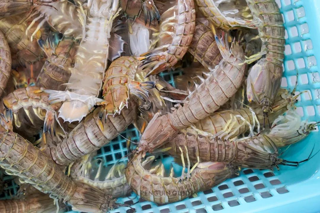 珠海皮皮虾,包膏包满活力四射,时不时要用尾巴甩出一滩水;