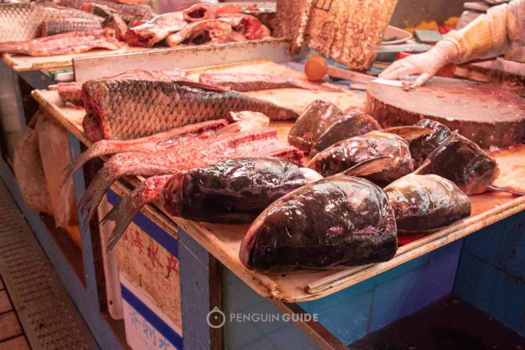 脆肉鲩的本质还是一条草鱼,长大的过程中被喂食了大量蚕豆,所以肉质脆弹,并且体型壮硕,以至于卖脆肉鲩的鱼摊看起来像个肉摊——