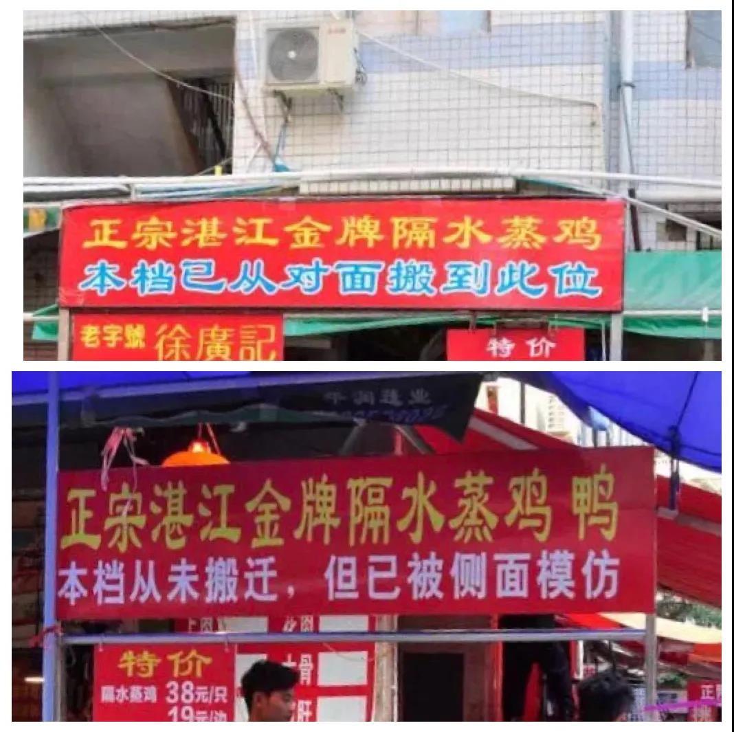 随机问了几个大叔大妈,并没人记得清到底哪家才是正宗老店。如今的标语已经克制许多,当年的架势简直是要指着对方的鼻子骂起来...