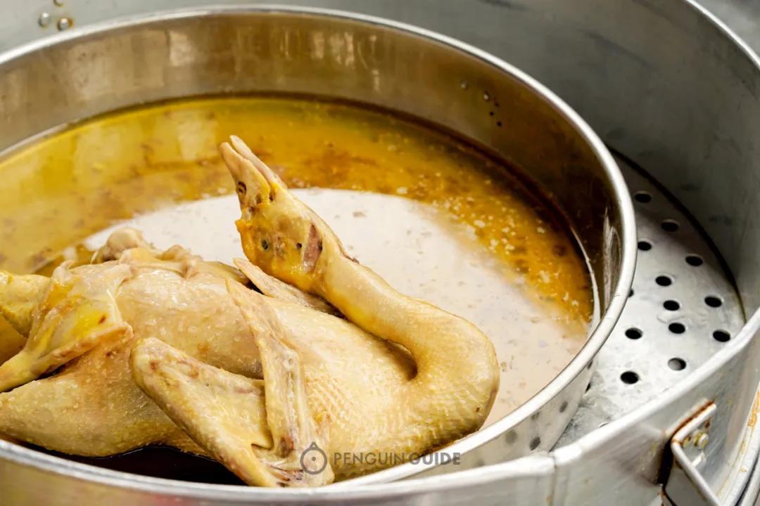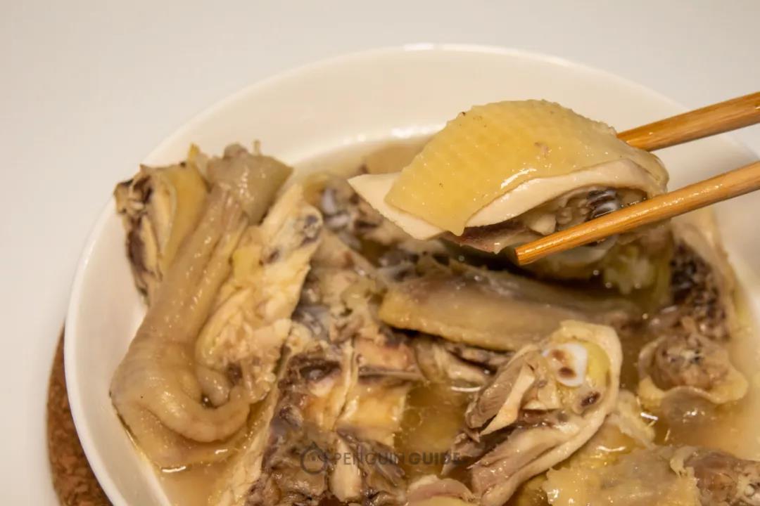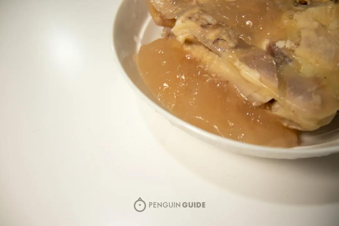 老板会帮你把鸡肉和一份“蒸汽波鸡汤”分别打包,几个小时之后,鸡汤已经完全凝结成冻,戳一下会duangduang地抖三抖,筷子头也变得黏黏的!