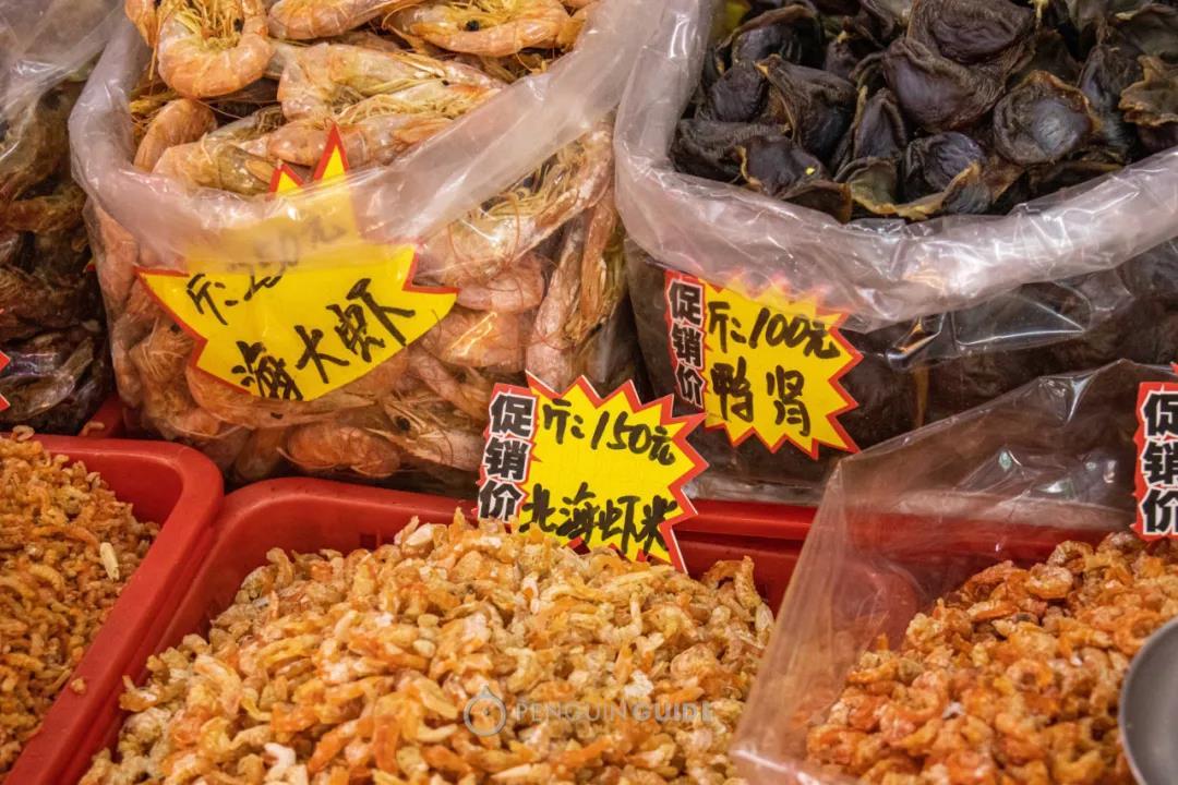 干货区也明显比超市厉害太多!在蛇口市场,你能找到细分到不同海域的鱼干虾干;