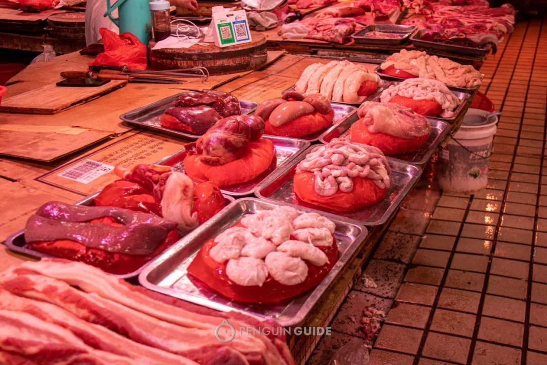 不过猪肉的硬核更为直观,在超市里很难买到的各种内脏杂碎,在蛇口市场都能轻松找到: