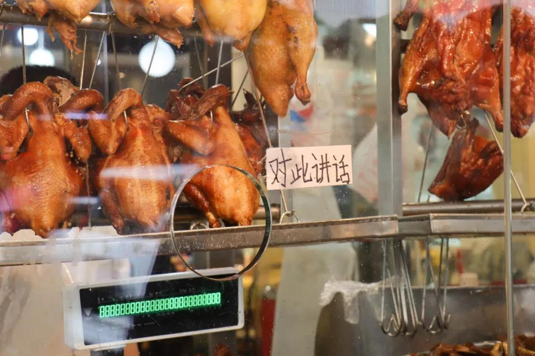不像超市里那种小家子气的熟食摊…烧鹅烧鸭满满挂了一排排,像是凭空多出来的一堵红砖墙;