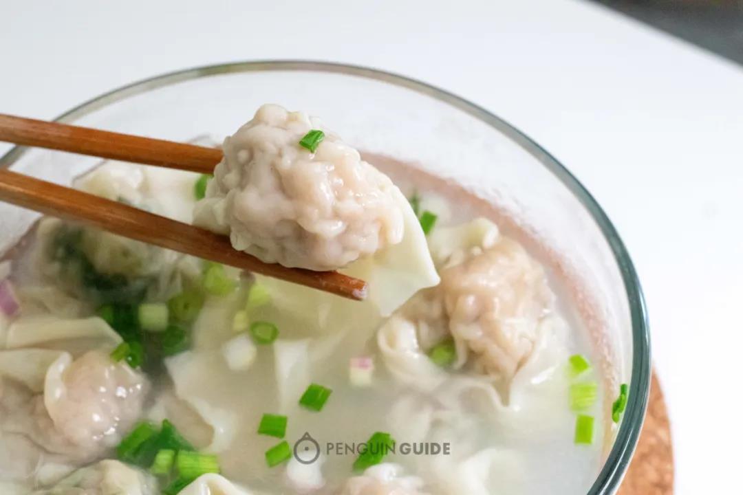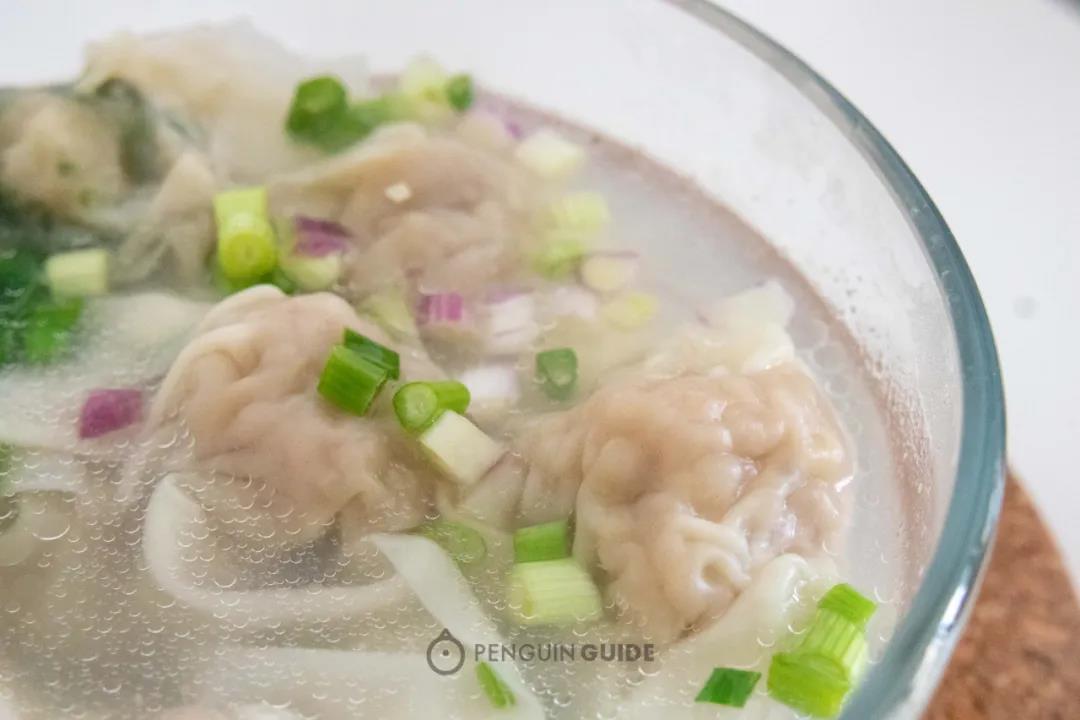 煮好之后像空心小气球浮在碗里,皮薄到几乎半透明。