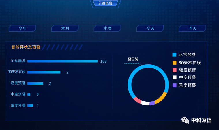 智能计量系统后台软件会对智能电子秤每日运行参数进行收集,并与内置参数范围进行对比,一旦出现参数未响应或者偏差,自动触发报警提示。