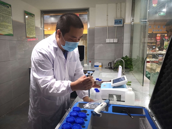 经过改造升级,灯杆坝农贸市场于今年初回迁营业。在增添了“颜值”的基础上,该市场更是融入了“智慧”的元素,在灯杆坝市场入口处,两块屏幕实时滚动交易数据,一块屏幕上,消费者可以了解到水产品、豆制品、蔬菜、肉类等类别商品的市场指导价,另一块屏幕上,市场快检记录清晰可见。在一楼设置了食品安全检测室,每天六点左右检测员会对售卖商品进行农药残留、兽药残留和瘦肉精的检测,一旦发现超标产品将立马下架,并对商家进行处罚。
