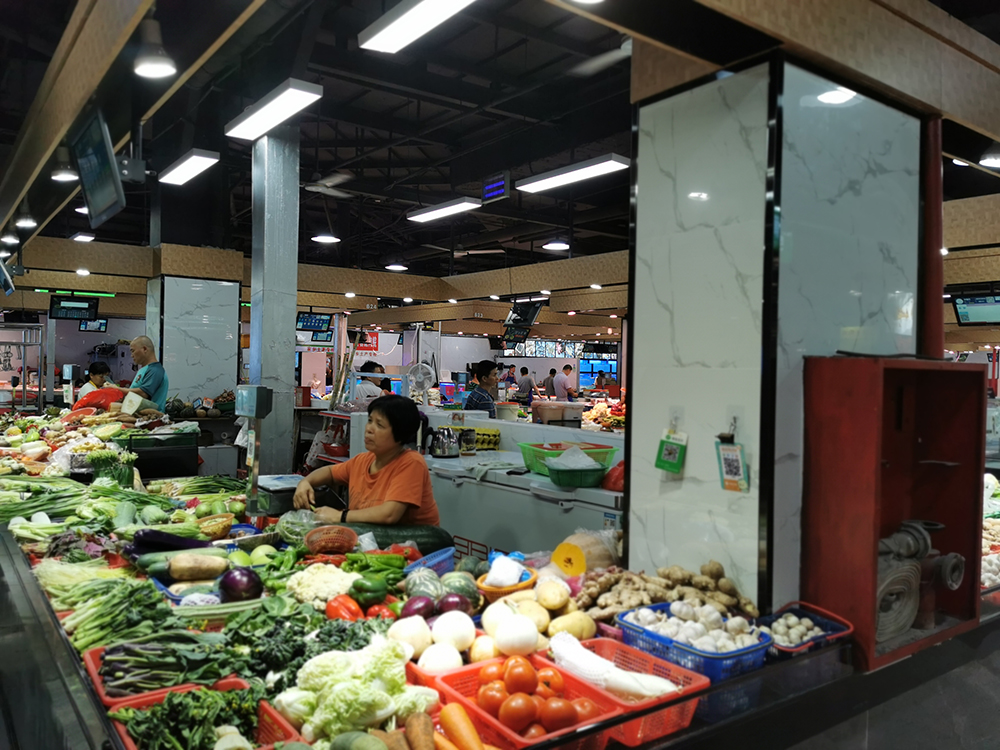 在惠民街市园岭店,对进入市场的食品执行严格的市场准入制度,落实“一猪一票”“一货一票”,台账记录上传至智慧农贸系统后台。市场统一为经营者配备了智能电子秤,室内所有档口均可无现金支付,还设了独立的食品检测室,配套智能数码检测仪等设施及时对市场内所经营的大部分食品进行农残检测。同时,升级改造后的市场将智能电子秤、农残检测、监控等设备接入网络平台,实现智能联网管理。