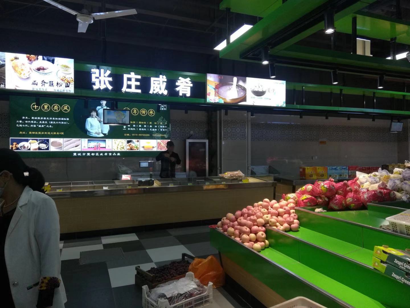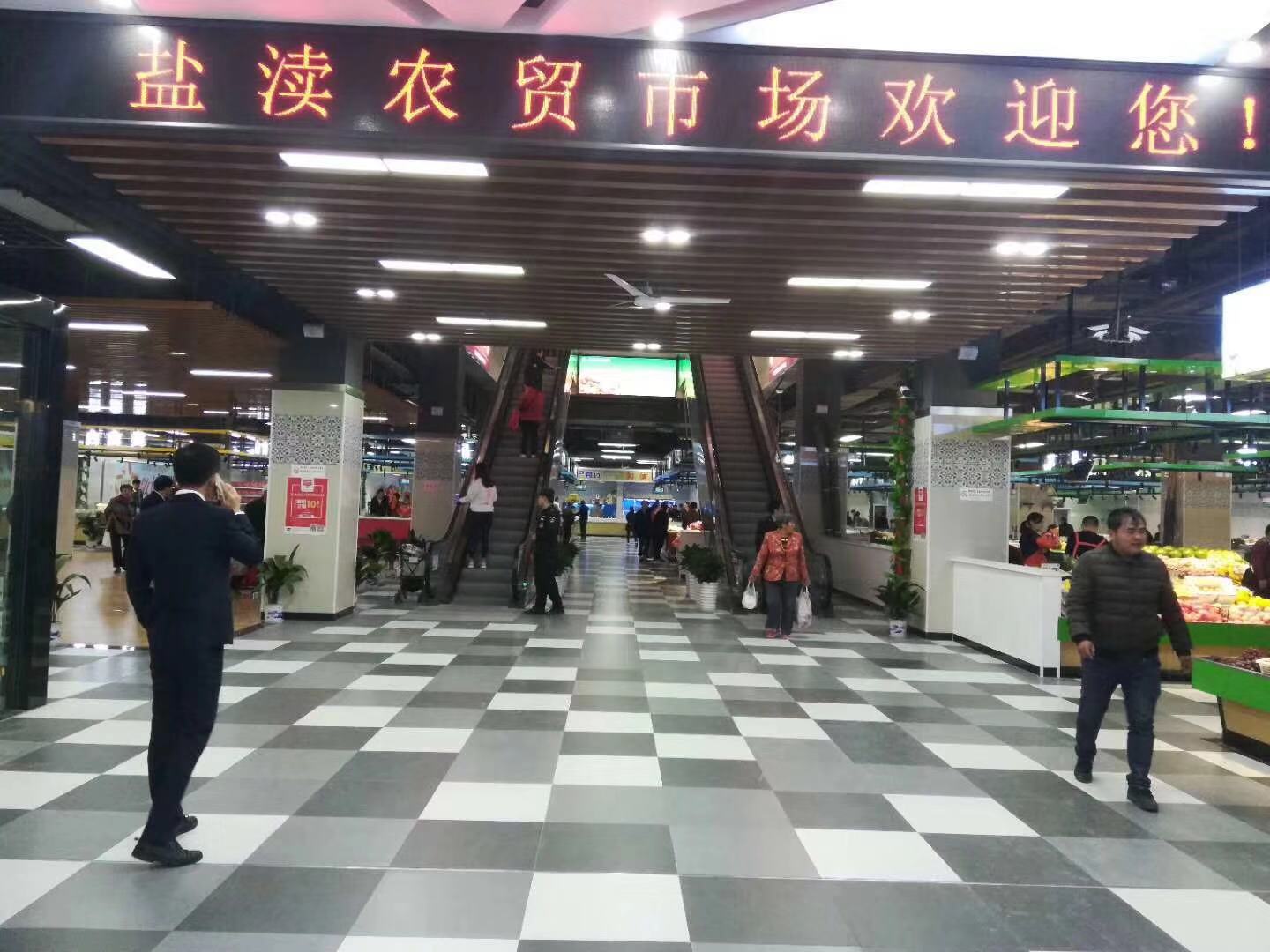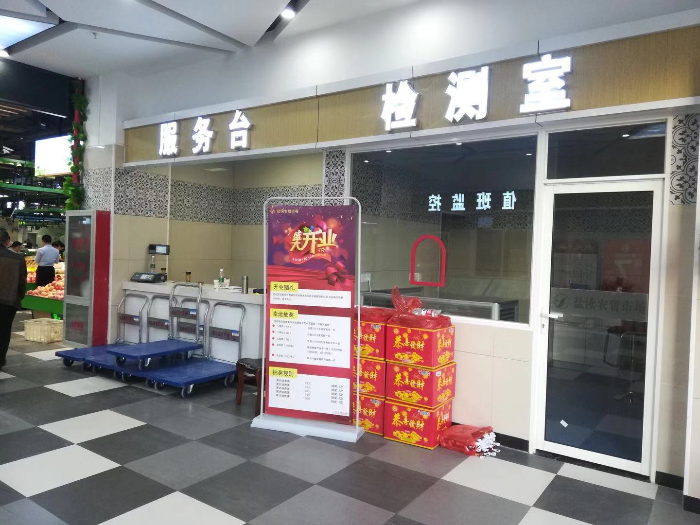 盐渎农贸市场坚持高起点规划设计、高质量建设施工、高标准运营管理,全力打造以服务城西南片区为主,辐射周边地区的大型综合农贸市场。该农贸市场以周边包间式围合中心岛的形式,共设商位156个,展示区1个。市场按商品种类划行归市,分为蔬菜区、豆制品区、猪肉区、水产区、地方农特产品区和自产自销区等16个交易区,交易区布局合理;按鲜活、干湿、生熟功能划分区域,同类商品区域设置相对集中。同时,市场配套建设地下停车场和地面停车场,满足停车、运输、配送需求;市场还配置了中科深信智慧电子秤、电子监控系统、中央空调、自动扶梯、客货专用电梯、LED显示屏、食安检测室、广播系统、服务台、公平秤、宣传栏等,提供消费者休息区域,提供免费开水、建议留言等服务。市场建立健全日常管理机制,制定经营守则、商品准入、食品安全卫生、治安保洁等管理制度。