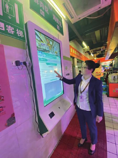 巴国城菜市场经理王红梅介绍菜市场智慧系统。通讯员 廖婉廷 摄