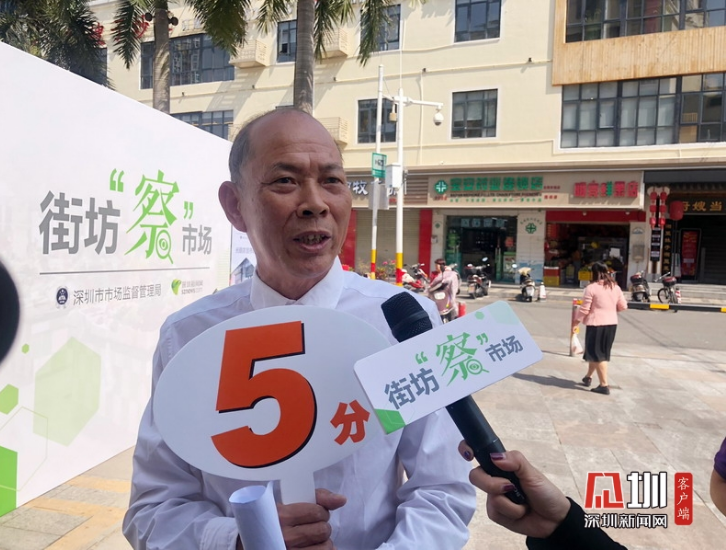 此次打分中,在光明农贸市场附近住了几十年的老街坊代表刘月泉给升级改造后的光明农贸市场打了满分——5分,他表示对升级改造后的光明农贸市场非常满意。“我1984年就来深圳了,看着光明农贸市场从最初的铁皮房变成干净整洁的综合场所,没有了臭味,地面也不滑了,真的比以前好太多了。”刘月泉开心地说道。