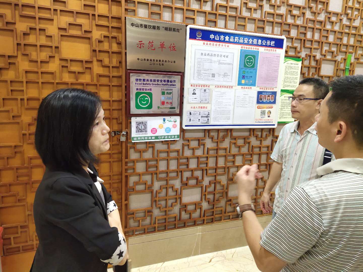 在东区家乐福超市远洋店、东区大信信轩酒家远洋店,调研组一行详细了解电子台账生成、追溯结果查询等关键环节的应用情况,并亲自通过手机终端扫描商家主体二维码,查询全部的肉菜种类,以及相关菜品的产地、进货时间等信息。最后,调研组一行特别强调各追溯节点企业要高度重视二维码追溯项目建设,积极配合项目组工作,每日营业前要做好入场来源登记、入场凭证统一上传等工作。