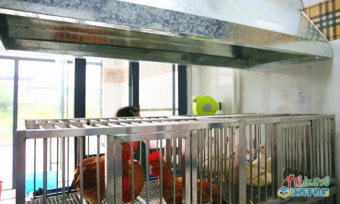 笔者来到活禽宰杀区,印象中往往会散发着难闻的气味,而这里的活禽区与其他摊位隔离开,独居一角,中间还有一道隔离门,设立单独活禽宰杀摊位,摊位里安装了高压水厢、水泵和大功率的排风机,每隔15分钟就会自动清洗活禽的粪便,消除了市场内腥臭难闻的异味,从而保持摊位内清洁、卫生。