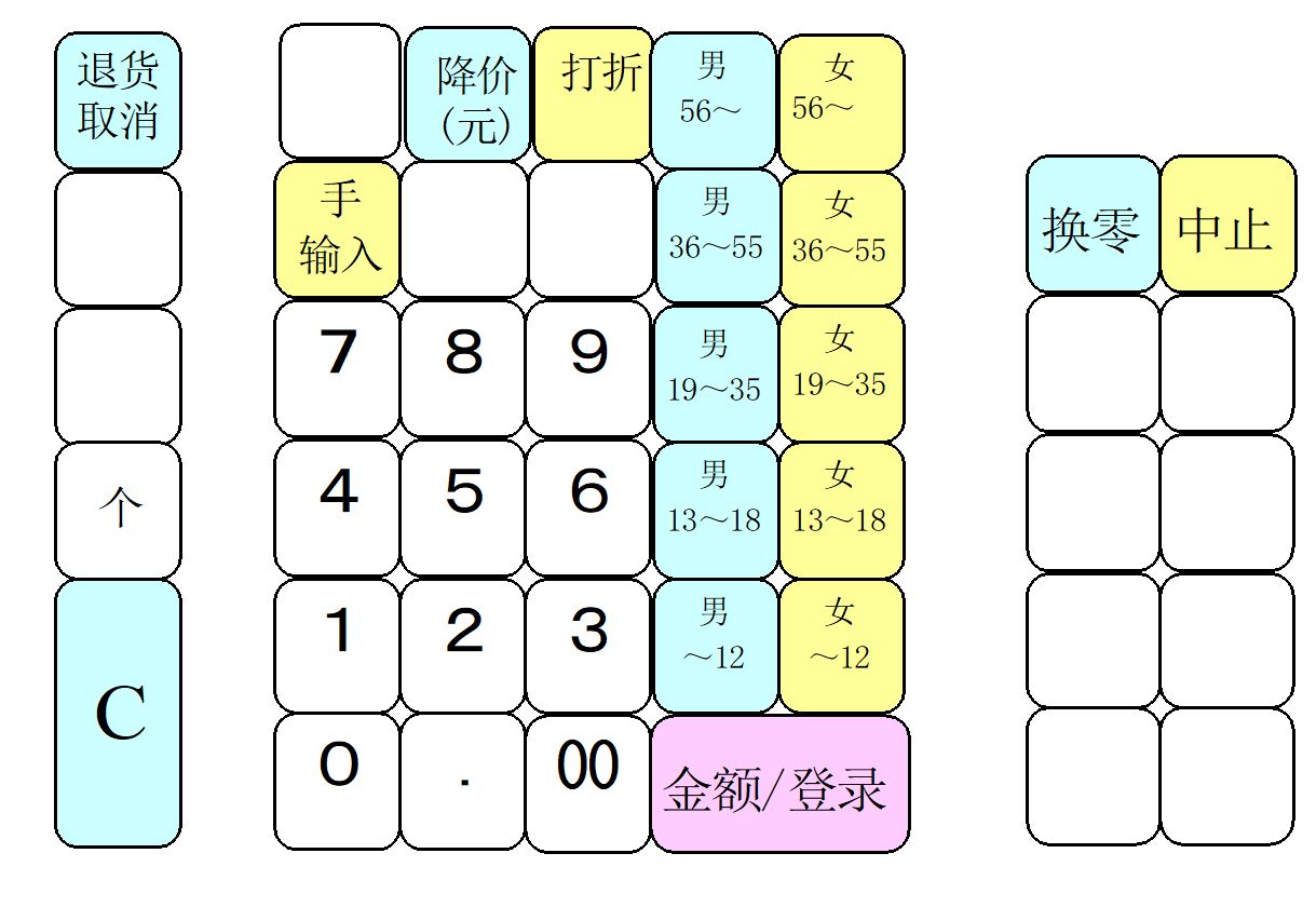 应该你也看到了,和常见收银机最不同的部分,是一大排男女12~56的数字键,这部分便利店系统称之为「 客层键」。收银员必须要靠人眼识别顾客的男女年龄,再按下这些「 客层键」,以便来为顾客打上标签。
