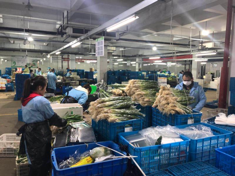 分拣中心灯火通明,每个作业台上都放着成堆蔬菜。台前,工作人员有的在剥莴笋上的残叶,有的在检查樱桃番茄是否破损,有的在搓掉土豆上的泥土,检查是否有虫眼或发芽……“快过年了,订单多,工作量也要比平时大,但顾客都不愿意过年买到残次品,所以公司要求我们在分拣时,老叶、老根、破损都要看得格外仔细。”已经在这里干了两年的分拣员李权对记者说道。