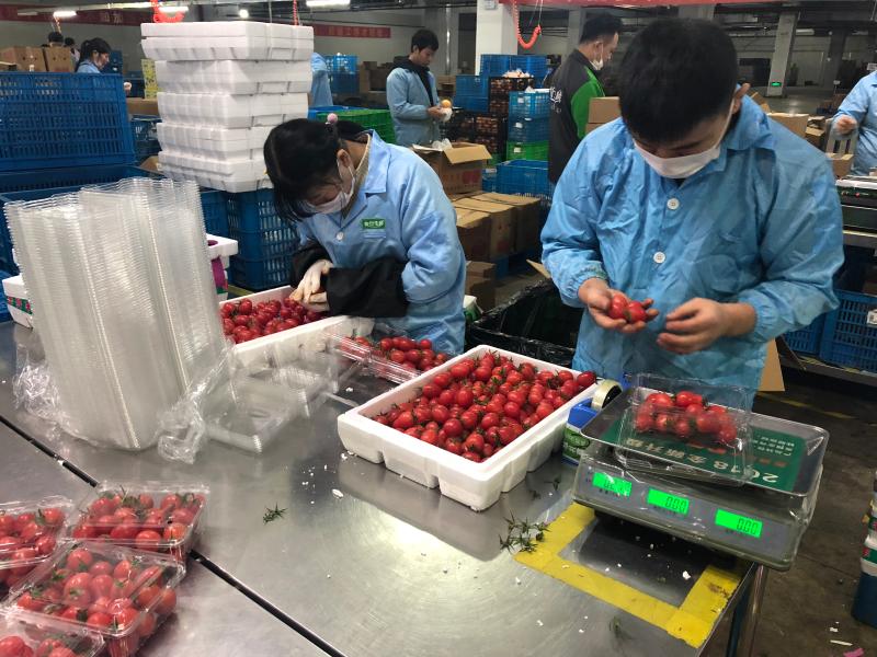 “春节临近,加上市民为避免去公共场合,纷纷选择网订店取的智慧微菜场,仅上海地区,今天的订单数量就要比前几天增加三成。”22日晚,记者随食行生鲜上海公司相关负责人高海峰来到地处苏州的物流配送中心采访,亲身体验他们猪年最后一个工作日的忙碌。