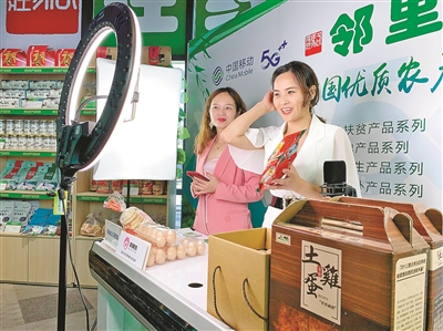 刚走到农贸市场二楼,蔡阿姨就看到两位美女主播,正在线上介绍湖北恩施的鸡蛋和小土豆,蔡阿姨觉得蛮有意思,多看了一会儿。“不知不觉我也跟5G应用搭上边了,没想到第一次体验是在农贸市场,蛮方便得嘞。”