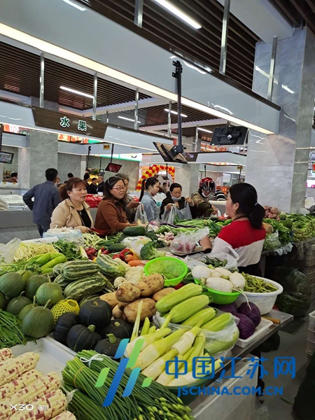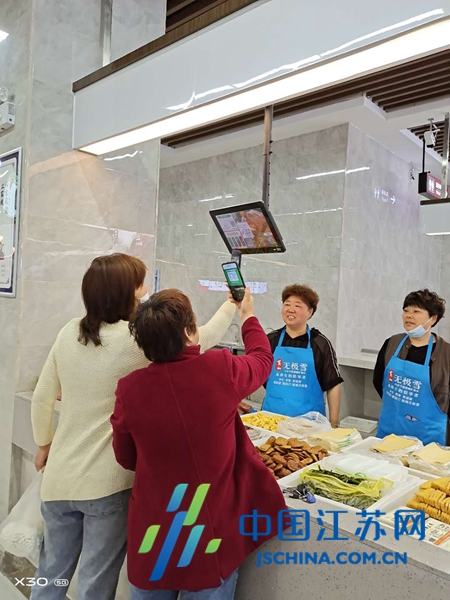 顾建梅说的放心,得益于该菜场的“智慧”。“与其他菜场最大的差别就是每个摊位前多了一个电子显示屏和电子秤。依托智慧电子秤,可以实时采集、公示交易数据,分析市场运行情况。同时,电子秤连接支付平台,顾客可以直接扫码支付,买菜可以不用现金。”射阳国投集团董事长戴誉有介绍,菜场安装了新风系统和中央空调,以保持菜场空气新鲜、温度适宜,同时还配备了无线网络、自动扶梯及升降客梯等,让群众购物更方便。