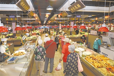 据介绍,为给市民营造良好的购物环境,以标准化市场建筑规范为蓝本,市场内经营设施统一,并设有冷暖空调、完善的通风、采光系统。市场还配备两部观光电梯、一部货梯、无障碍卫生间等公共设施。此外,该市场严格落实食品卫生安全管理制度,配有食品检测设备,要求每位商户必须佩戴健康证,统一办理营业执照,做到亮照经营,并设有专职食品卫生监管人员监督管理。按标准配备并安置消防设施,指定人员做好定期检查工作。保证食品消防安全。市场设立垃圾分类回收站,并配有专职管理人员,做到集中处理,保证垃圾日产日清。建立上下水处理系统,确保污水分流,油烟按国家环保要求排放,确保周边环境干净整洁。设有专用停车场,常设专职人员监督管理,做到不扰民、不堵路。
