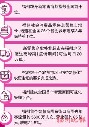 2018年,福州在全国率先提出打造“新零售之都”的战略目标。如今,福州在零售创新转型、智慧商圈建设等方面取得了显著成效,有力推动了商贸零售业大发展。