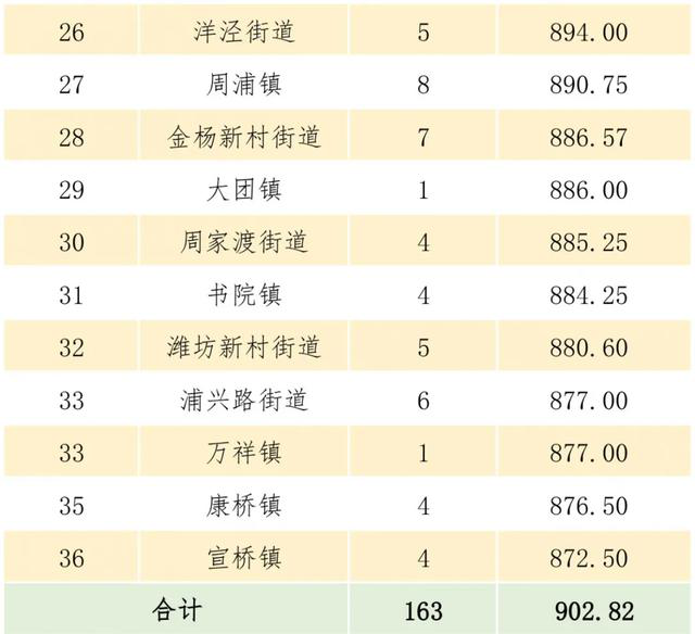 先来看各街镇排名