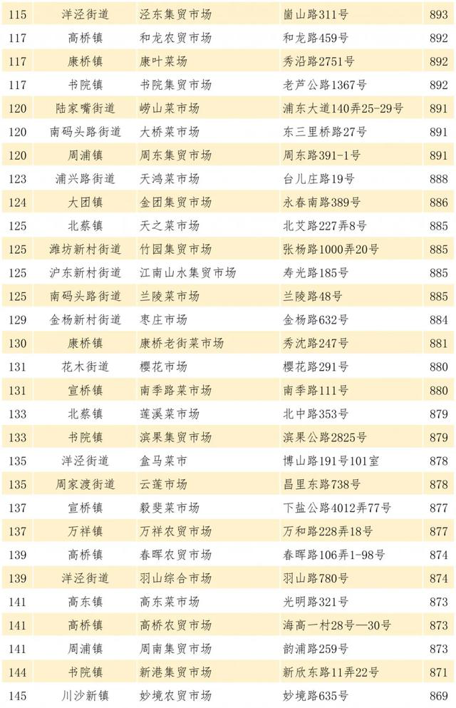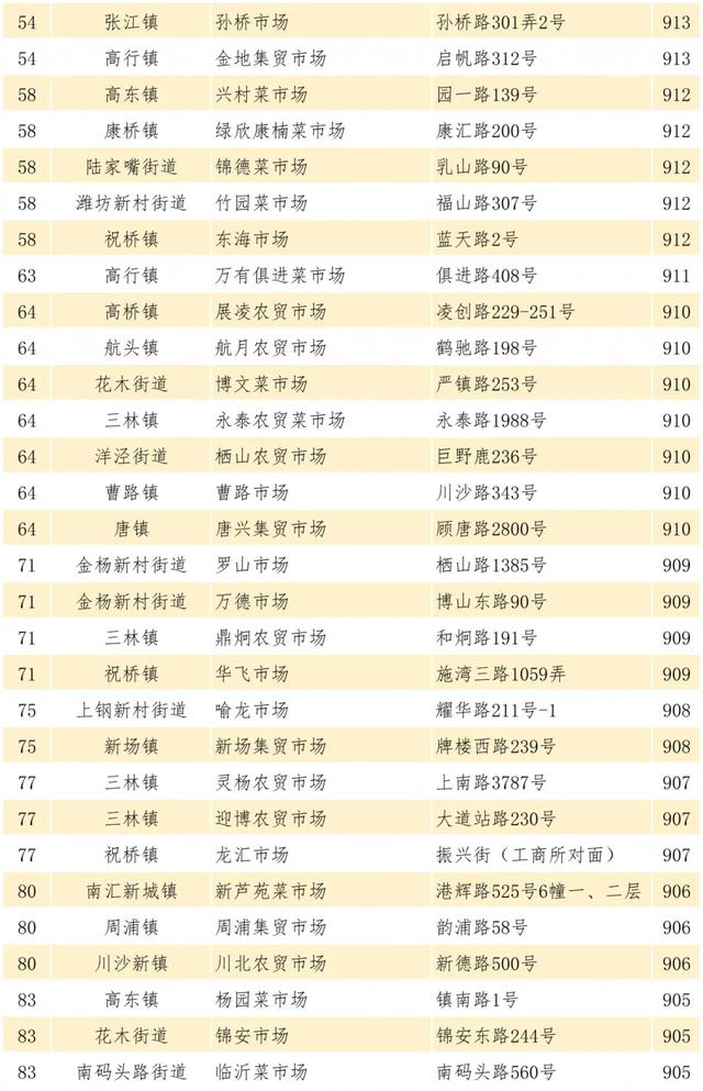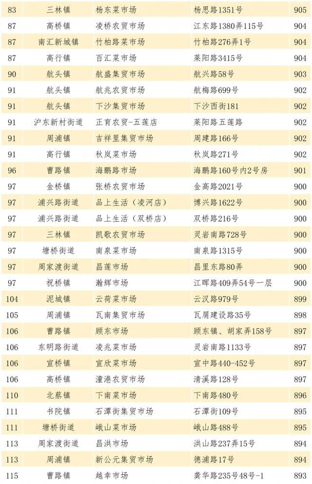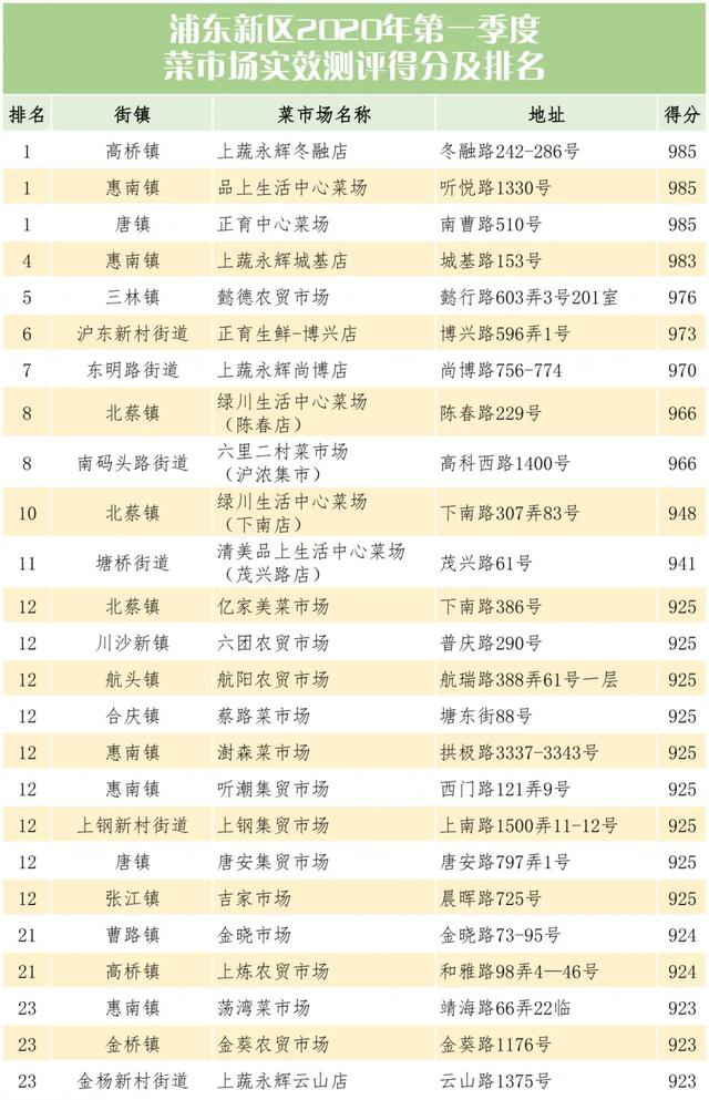管理实效优秀的菜市场中,高桥-上蔬永辉冬融店、惠南-品上生活中心菜场、唐镇-正育中心菜场测评得分较高,排名靠前。