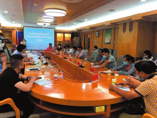 南宁市市场监管局集体约谈13家不积极配合创城工作的农贸市场开办方。记者陆增安摄