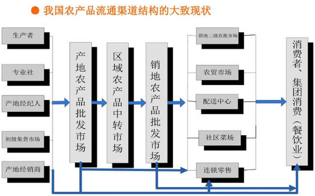 据统计,我国经批发市场交易生鲜农产品的比重高达73%以上,大中城市的这一比例还在逐年上升。根据农产品的商品特性,无论是小生产还是大市场,根据产地、品种的不同,从而形成了以产地市场、销地市场、集散市场统筹发展,综合市场和专业市场互补互进,以大中城市为中心,遍布城乡的多层次多元化的市场流通格局。