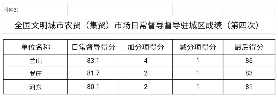 全国文明城市农贸(集贸)市场日常督导督导驻城区成绩(第四次)