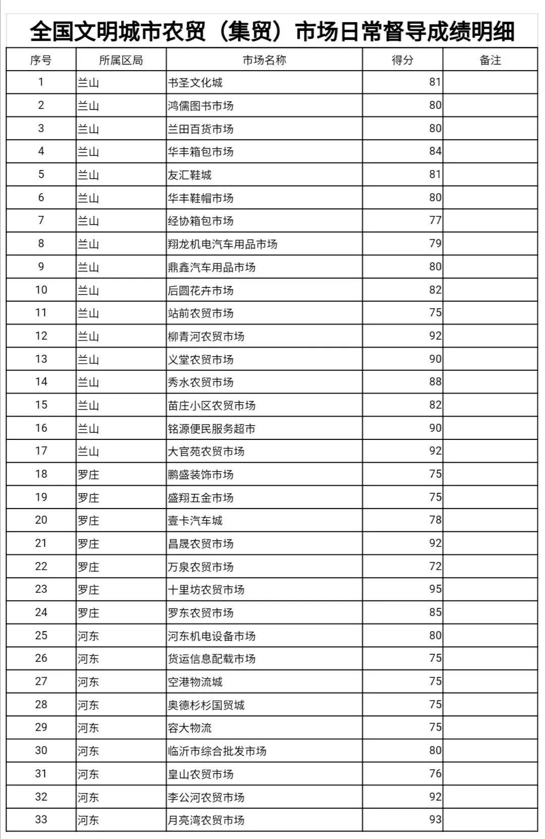 全国文明城市农贸(集贸)市场日常督导成绩明细